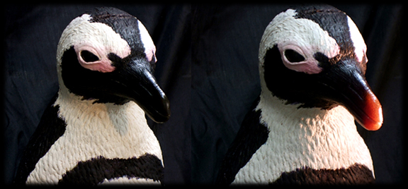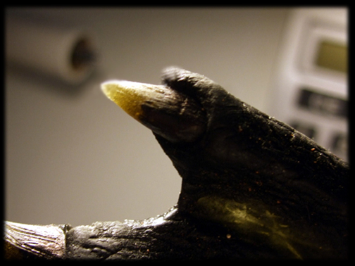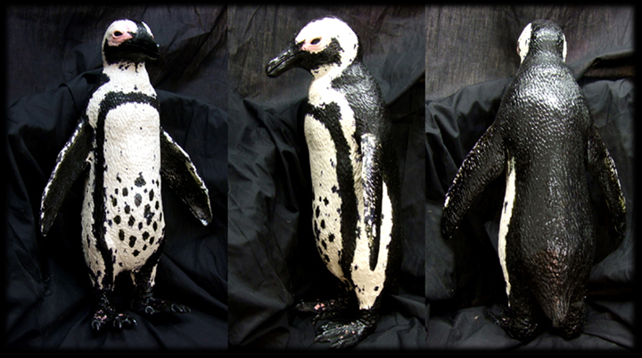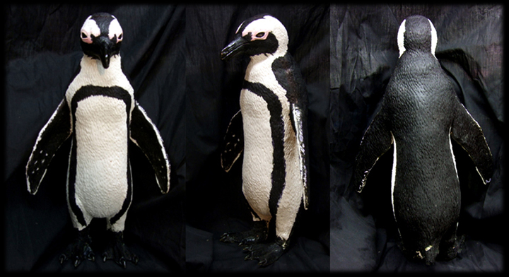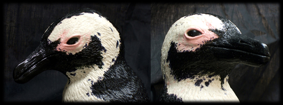 Cast in-mold integral pigment for water-proof plumage pattern and translucent beak and claw. |